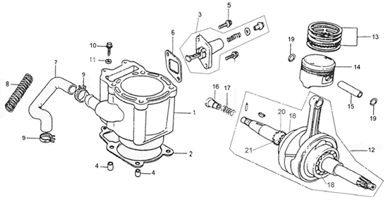 Cylinder, Piston, Crankshaft (Adly ATV Q280)